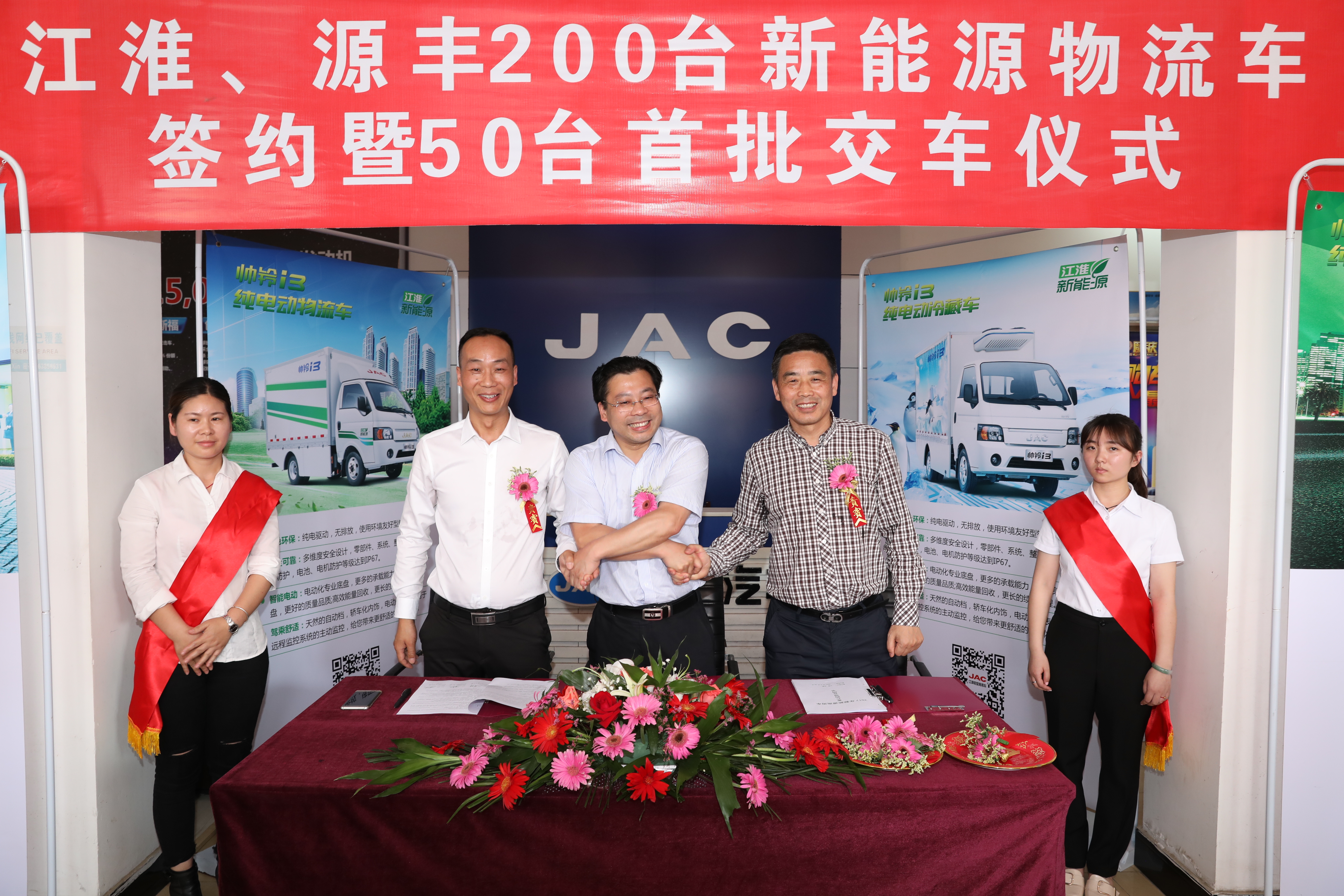 5月19日,安徽源豐新能源汽車銷售服務有限公司集中采購的200臺江淮新能源物流車,在安徽瑞鑫汽車銷售服務有限公司完成簽約和首批50臺交付。江淮輕型商用車營銷公司、江淮專用車有限公司及安徽瑞森汽貿公司相關領導、負責人參加簽約交付儀式。