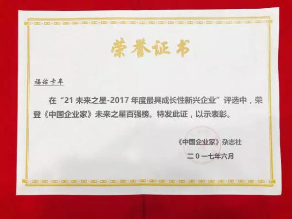 福佑卡車入選中國企業(yè)家未來之星百強(qiáng)企業(yè)榜單 兩年?duì)I收增長600多倍