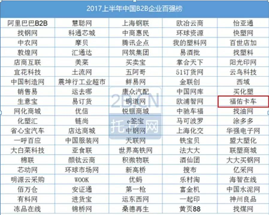 2017上半年中國B2B百強榜發(fā)布 福佑卡車排名上升幅度最大