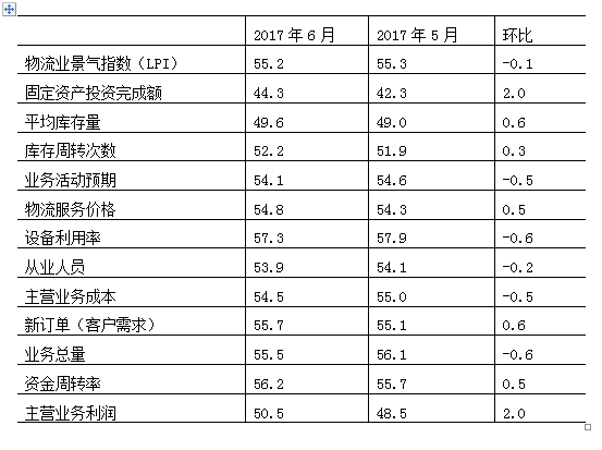 2017年6月份福建省物流業(yè)景氣指數(shù)(LPI)為55.2%