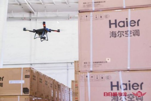 (日日順智慧物流基地普宙無人機進行倉庫貨物盤點)