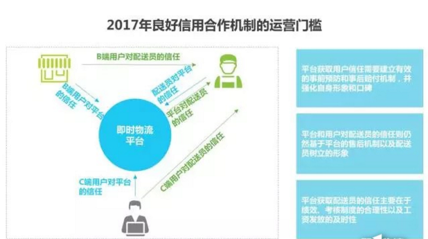 隨著O2O的深入發展,即時物流在為人們生活提供更多方便的同時也開始豐富傳統物流方式,以更加直接的方式完成配送任務,提高物流效率;與此同時,即時物流平臺憑借智能化的調度系統、大數據預測、新興的運力組織形式幫助行業提升效率。高效的數據運用必須依賴大量的運營數據,市場先入者已經積累了豐富的數據資源及系統化管理經驗,新入者在切入市場時必然會面對冷啟動和技術壁壘的障礙。