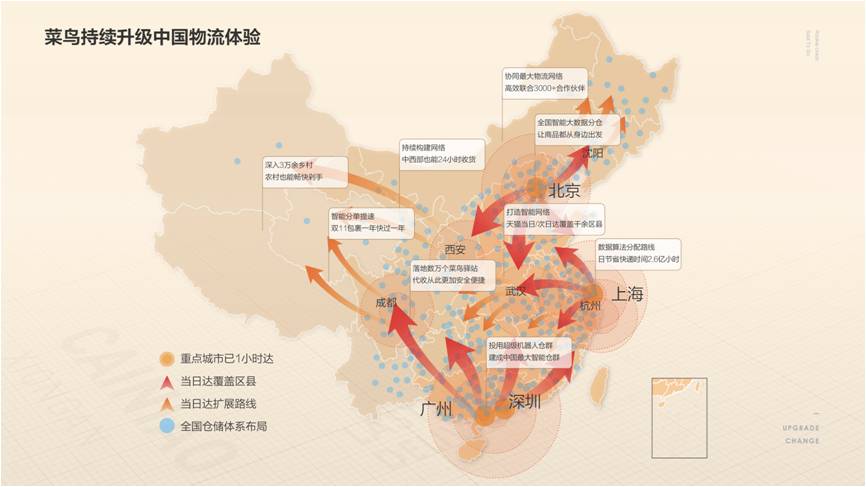 今年以來隨著阿里巴巴在新零售方面不斷落子,以菜鳥為主的智慧物流網絡也在不斷升級,打破傳統模式。比如盒馬鮮生的30分鐘送達,天貓超市在北京上海推出的1小時送達,菜鳥裹裹推出的淘寶天貓兩小時上門取退等,都在創造新的市場供給。