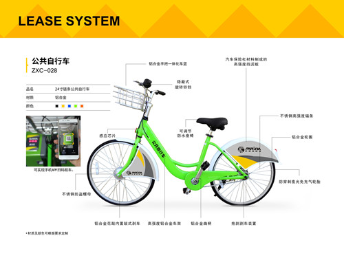 公共自行車的主要材料是鋁合金和不銹鋼,能夠防銹防腐蝕;金屬前車籃與車把一體焊接,屬于防拆設(shè)計(jì),防盜性能強(qiáng);車架自帶避震器,使用戶騎行更加舒適;系統(tǒng)采用全封裝制動(dòng)器,前輪采用鼓剎,后輪抱剎,雙重剎車設(shè)計(jì)更加安全;該車的輪胎采用新型免充氣輪胎,鋁合金加刀圈,增加耐用性;車座設(shè)計(jì)舒適,快速升降及鎖定、車鈴及隨車鎖具,操作簡(jiǎn)單方便;另外具有電子身份識(shí)別卡,車型符合人體工程設(shè)計(jì),更加舒適和安全可靠。
