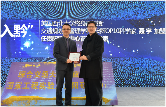 美國西北大學終身正教授、交通規劃與管理學科全球TOP10學者聶宇現場受聘為綜合交通大數據應用技術國家工程實驗室貴陽研發中心的首席科學家。