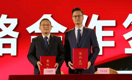 卡車之家CEO邵震先生(右)與東風輕型商用車營銷公司總經理邱曉軍先生(左)簽訂戰略合作協議