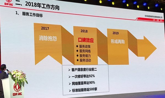服務工作將緊緊圍繞“口碑效應”這一工作思路開展全年服務,從服務政策、服務網絡、服務能力三方面深化,實現產品與服務的高度融合,達到“客戶滿意度行業前二、一次修好率達90%、網絡覆蓋率達90%、標準站服務站500家”的目標,提升服務口碑,真正贏得更多用戶滿意。