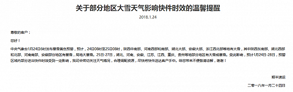 日前,各大主流快遞公司紛紛發布快遞延誤公告。