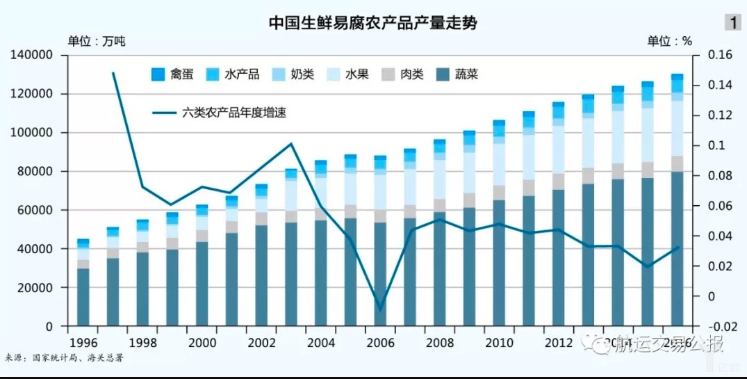 近年來,以海運(yùn)為主的外貿(mào)生鮮農(nóng)產(chǎn)品貿(mào)易量較快增長。2016年,生鮮農(nóng)產(chǎn)品進(jìn)出口總量超過2000萬噸,約為2000年的4倍,占全球遠(yuǎn)洋冷藏運(yùn)輸量的二成左右。與東盟食用水果貿(mào)易持續(xù)增長——中國與澳洲自貿(mào)協(xié)定帶動(dòng)澳洲出口中國牛肉貿(mào)易額占中國進(jìn)口量的一半;中國以84%的進(jìn)口份額成為智利水果最大買家;新西蘭佳沛公司出口中國奇異果2400萬箱,較2015年的1800萬箱增加三成。