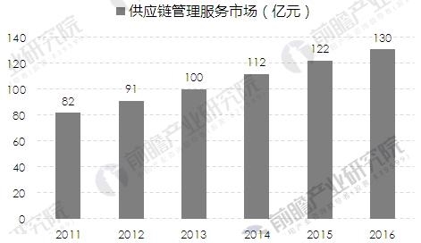 2011-2016年中國軍工企業(yè)供應(yīng)鏈管理服務(wù)市場規(guī)模(單位:億元)