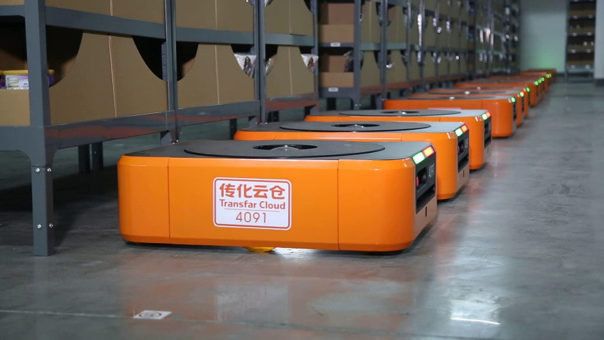 在傳化云倉智能一號倉內(nèi),一排排AGV移動機器人有條不紊的穿梭在上千個貨架中自動執(zhí)行上架、揀選、補貨、退貨、盤點等訂單任務(wù)。基于公路港城市物流中心,傳化通過數(shù)字化的手段把分散在城市各處的倉庫進行連接和協(xié)同,形成分布式倉儲網(wǎng)絡(luò)“智能云倉”,為客戶提供共享的全國倉配網(wǎng)絡(luò)。