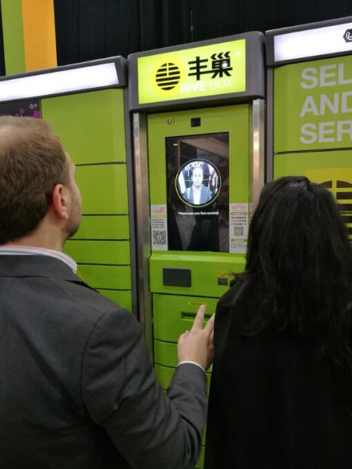 通過線上人臉采集及入庫后,用戶前往柜機進行面部掃描即可匹配對應身份,將物品存入格口,取出時同樣掃描面部即可取出,這一方面加強了便捷性,尤其是人流量大的商場、購物中心等,刷臉暫存非常方便,另一方面增強了安全性。展會現場,各國參展商紛紛圍觀、試用與討論,并對豐巢產生了極大興趣,很多商家欲進一步引進智能柜機洽談合作。