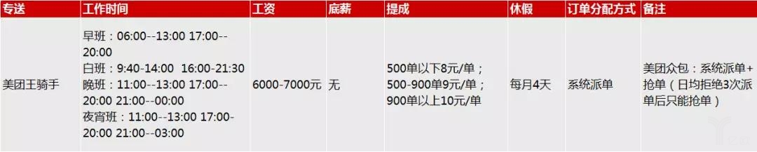 在美團,有直營、加盟及眾包模式,不同的模式、不同的區域以及不同的團隊的工資結算模式都不一樣,比如王怡便是在加盟的團隊,按單量提成工資月結,500單以下每單8元,500-900單每單9元,900單以上每單10元,在扣除各項費用之后,王怡一個月能拿到六七千元。