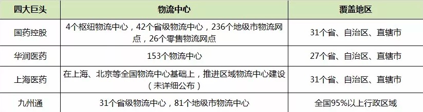 近日,九州通發(fā)布2017年年報,據(jù)其年報顯示,2017年九州通實現(xiàn)營業(yè)收入739.43億元,比上年同期增加20.12%,截至2017年底,九州通已在全國先后投資布局了112個醫(yī)藥物流配送中心,而國藥、華潤、上藥等流通行業(yè)巨頭也都在全國擁有強(qiáng)大的分銷網(wǎng)絡(luò)。