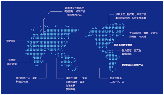 海航冷鏈全球生鮮商貿(mào)產(chǎn)品分布(部分)