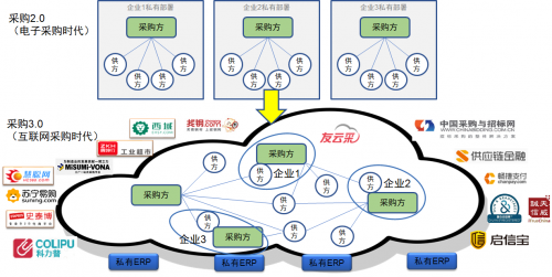 企業采購從供應鏈級的電子采購向社會級的,智慧化的互聯網采購發展,原有采購體系被打破,新的采購生態形成。
