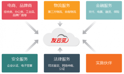 連接和協同服務:連接:私有云與公有云的連接(NC、U8、U9、等標準化ERP接口服務)、公有云與公有云的連接(電商、金融、公共服務標準連接)協同:提供多點、實時、并發、網狀的服務,例如把供應商、電商連接起來,兩者不管在友云采平臺,還是電商平臺上面,交易的同時會把信息推送到ERP,通過訂單、到貨、入庫、發票、付款各個環節信息一次錄入、消息推送,采購商與供應商之間及時共享,提高采購協同效率