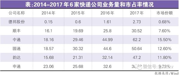 至于申通、圓通還有德邦,都需要繼續觀察。申通今年預期估值可能會在20倍以下,但他的問題也不少,能不能投資要看兩點,一是申訴率有沒有下降;二是業務量有沒有回升。圓通今年的資本開支很大,后續看對加盟商的管控能力有沒有強化。德邦股份剛上市,原來主業聚焦的是快運重貨市場,2013年進入快遞業,定位也是在重貨這塊,數據看增長還不錯,而且管理層執行能力強,有做強做大的戰略野心,值得投資者跟蹤。