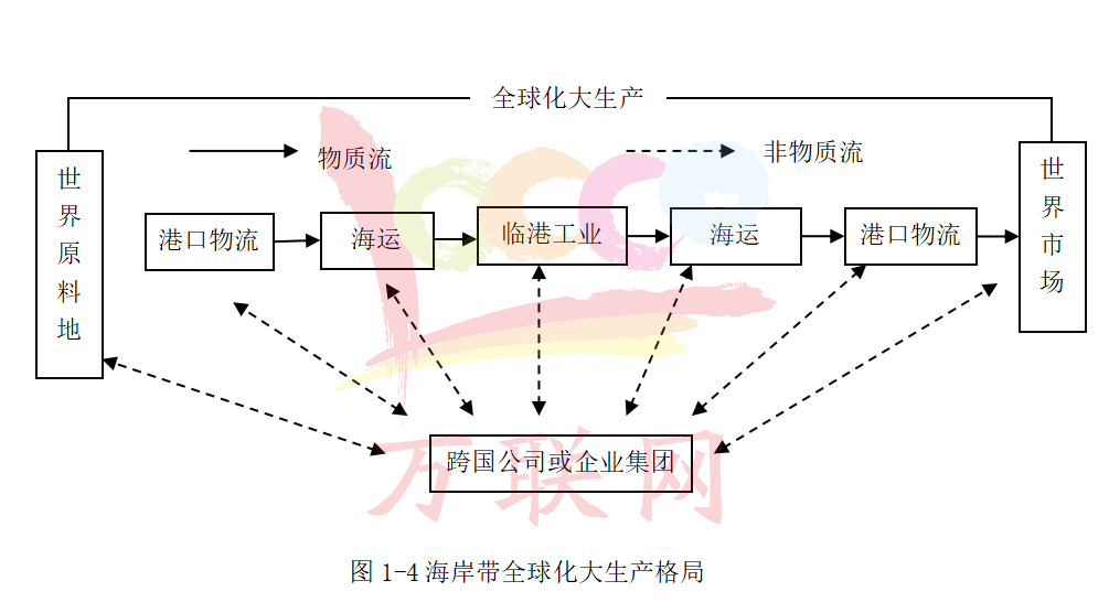 近半個世紀(jì)以來,海岸帶臨港工業(yè)迅速崛起并持續(xù)高速發(fā)展,依托海港建設(shè)、大型船舶運輸發(fā)展起來的臨港工業(yè)和海運物流,在跨國公司的運作下形成了現(xiàn)代意義上的全球化大生產(chǎn)。海岸帶是世界人口密集、經(jīng)濟(jì)發(fā)達(dá)的地帶,在全球經(jīng)濟(jì)一體化和全球化大生產(chǎn)中具有重要的地位。海岸帶臨港工業(yè)和海運物流的發(fā)展,是全球化大生產(chǎn)過程的重要環(huán)節(jié),跨國公司或企業(yè)集團(tuán)是全球化大生產(chǎn)的組織者,依靠先進(jìn)的通訊技術(shù)和與全球范圍內(nèi)的原料地、國內(nèi)外產(chǎn)品市場緊密聯(lián)系,形成海岸帶全球化大生產(chǎn)格局。