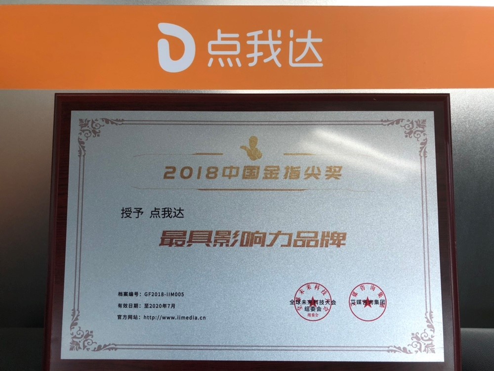 近日,由全球未來科技大會組委會主辦,上海市互聯網協會、艾媒咨詢集團承辦的“2018全球未來科技大會”在上海隆重開幕。數千名業界專家、企業家和學界大咖出席了本次會大會。在大會同期舉辦的“2018中國金指尖獎”頒獎典禮上,點我達憑借其行業的領先地位和影響力,獲得了大會頒發的“最具影響力品牌”獎。