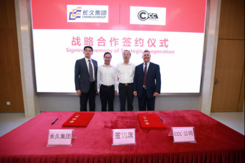 8月27日,長久集團與加拿大CCC集團的戰略合作簽約儀式在安徽滁州蘇滁現代產業園舉行,參加簽約儀式的有:中國物流采購聯合會汽車物流分會會長馬增榮、滁州市市委書記張祥安、長久集團總裁兼改裝車系統總裁王昕、長久集團改裝車系統常務副總裁葛賢文、長久集團改裝車系統副總裁兼滁州工廠總經理朱寶權、加拿大CCC集團董事長比爾·保羅克、加拿大CCC集團運營官Jennifer Lee Helmsteadt 等。