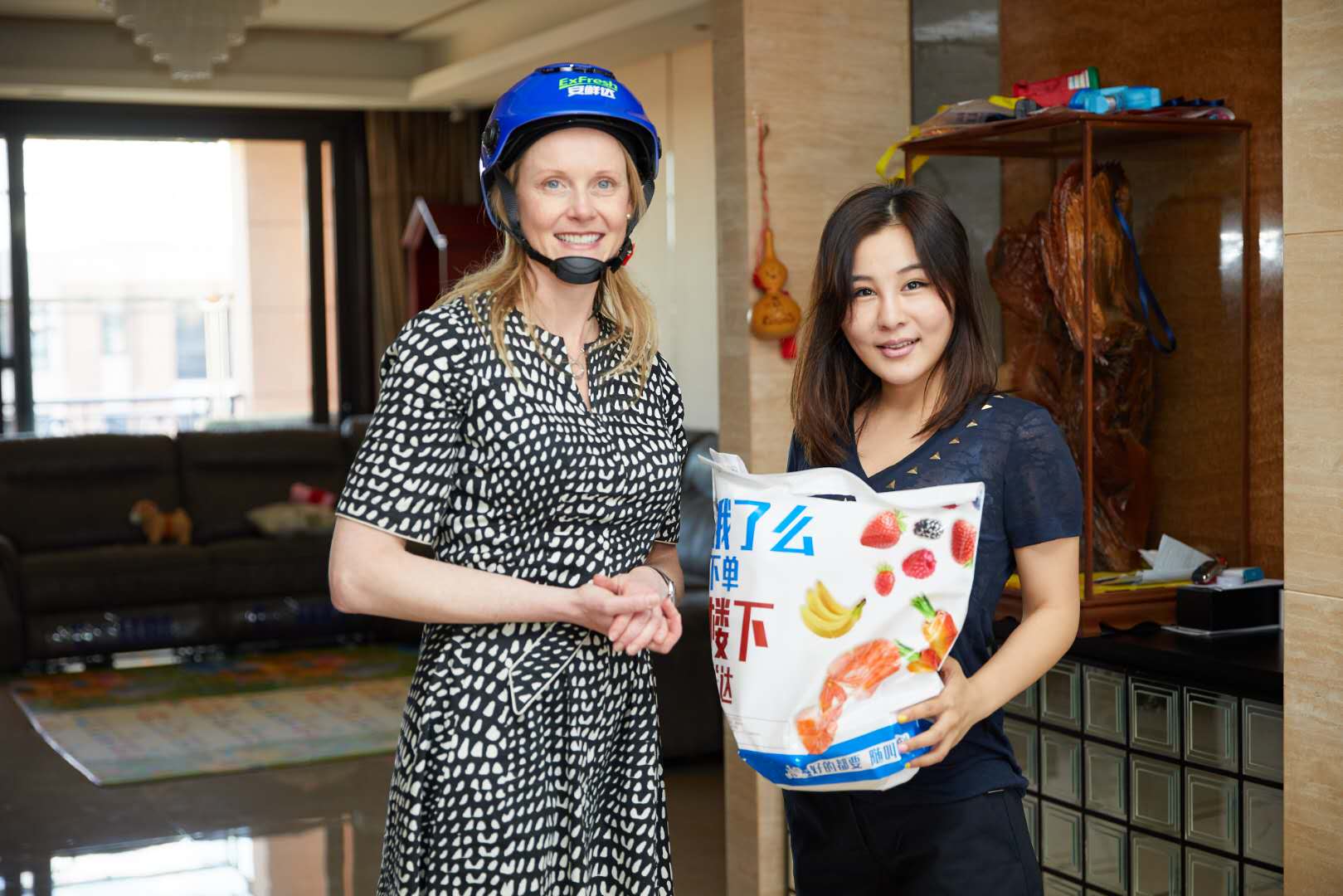 隨后,佩戴藍色頭盔的Courtney Sarah女士從安鮮達仙霞倉出發,一小時后即到達收件客戶倪小姐家中,完美達成了本次塔斯馬尼亞州牛肉和澳橙的超新鮮派送。