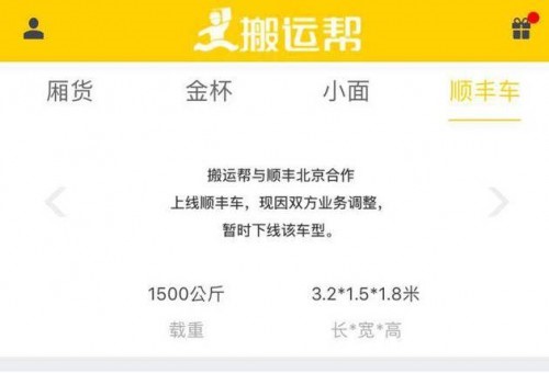 最近順豐聯(lián)手搬運(yùn)幫app推出同城貨運(yùn)服務(wù)消息不脛而走,但過(guò)程一波三折。9月26日下午,搬運(yùn)幫app下線“順豐車”。9月27日,搬運(yùn)幫app車型中又出現(xiàn)“順豐車”,但車型顯示頁(yè)面為一則公告——“搬運(yùn)幫與順豐北京合作上線順豐車,現(xiàn)因雙方業(yè)務(wù)調(diào)整,暫時(shí)下線該車型”。