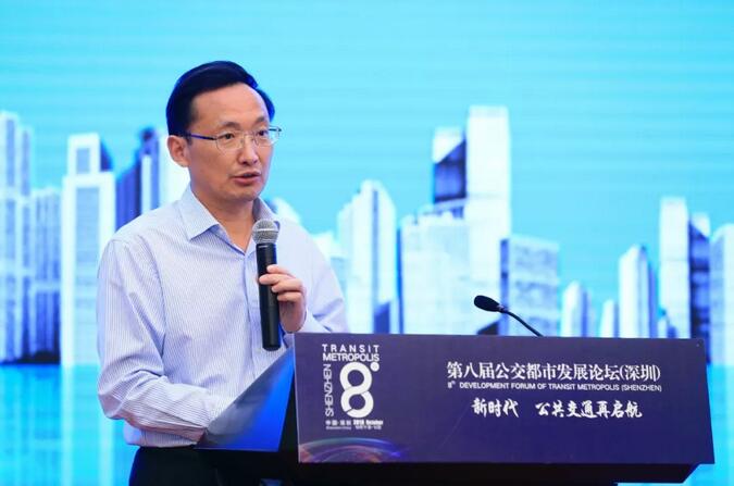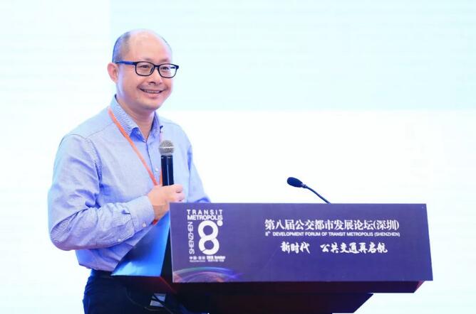 在主題演講環(huán)節(jié),首先上臺的是深圳市交通運輸委員會(市港務管理局)黨組成員、副主任徐忠平,他帶來《深圳公交都市發(fā)展的實踐與思考》的演講。