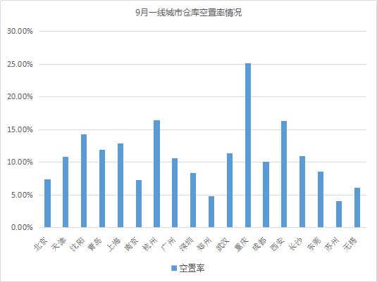 總的來說,9月倉庫需求與供給同時增加,相較于8月,一二線城市通用倉庫空置率有小幅上漲。