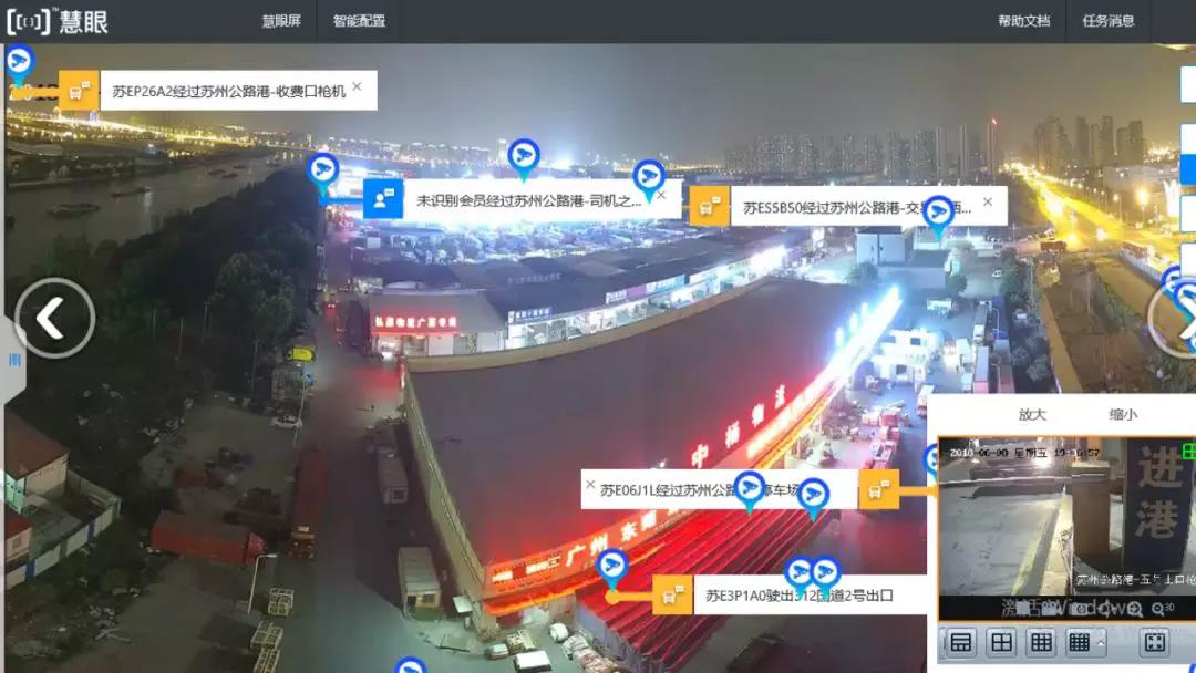 公路港城市物流中心AR監控——通過AR技術及物聯網技術,實時監控車流、人流實時分布,系統自動記錄人、車、貨信息,實現智能監控運營。