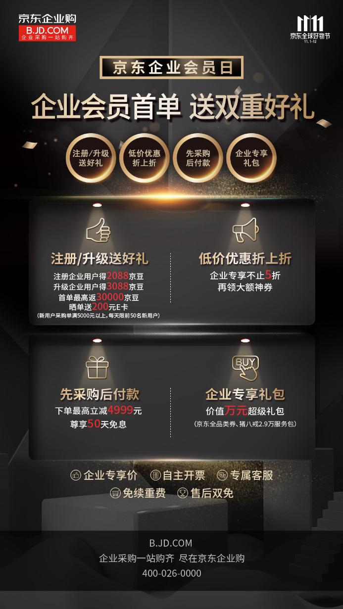 京東企業(yè)購作為京東集團(tuán)面向企業(yè)用戶開放賦能的重要窗口、服務(wù)企業(yè)用戶的核心平臺,已經(jīng)贏得眾多京東企業(yè)會員們的一致好評。在10月20日-11月15日11.11京東全球好物節(jié)期間,京東企業(yè)購全面打通京東在物流、金融等各方面的資源,為企業(yè)用戶們準(zhǔn)備了超值驚喜。