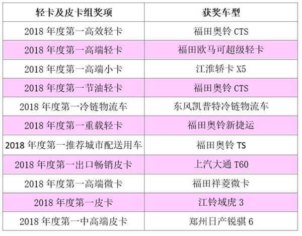 輕卡及皮卡組獲獎車型