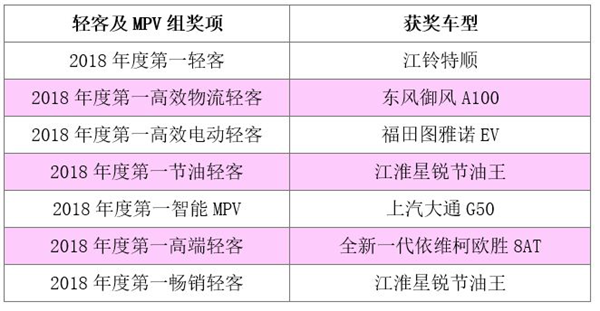 輕客及MPV組獲獎車型