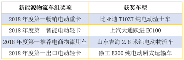 新能源物流車組獲獎車型