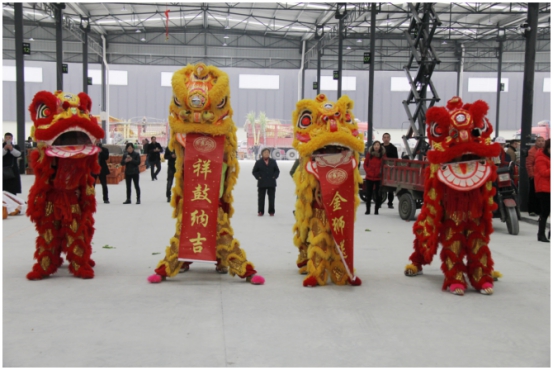 隨后,儀式現場舉行了“祥獅拋青”活動。“勇敢的祥獅即將登上險峻的山峰,為我們集團水果交易區祈福——七星高照、祥鼓納吉,金獅送福,五福臨門”;腰鼓隊鼓聲齊鳴,祥祝大吉大利。