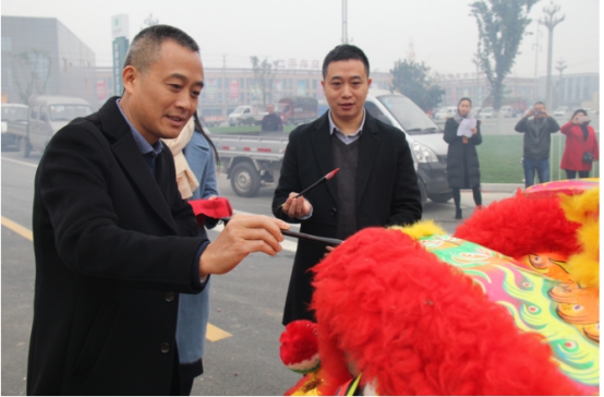 (圖:副總裁劉邦文(左)和譚波總監現場給舞獅點朱砂)