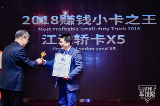 2018年12月6日,在“第二屆尋找車極限”活動發布會上,經過組委會調查組實地調查和組委會專家團審核,江淮轎卡X5獲得“第二屆尋找車極限”活動中的“2018賺錢小卡之王”殊榮。