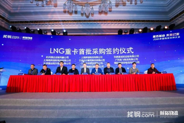 在本次大會期間,胖貓物流還與9家承運商伙伴企業進行了LNG清潔能源重卡首批采購簽約儀式。