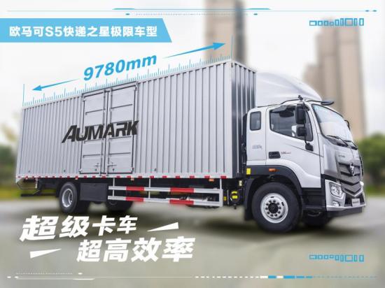 另外,在試駕現場,也看到了歐馬可為快遞物流運輸行業打造的快遞之星S5超級中卡“極限車型”, 將產品尺寸做到極致。其軸距長達7300mm,可放置18個1×1.2m的托盤,整車貨廂尺寸為9780×2450×2600mm,貨廂空間高達62.3 m3。這款“快遞之星”S5超級中卡以符合法規的極限設計,匹配超大貨廂,有效提升產品的裝載空間,拉的更多,有效提升快遞運輸效率。