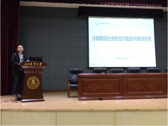 12月13日下午,由中國物流與采購聯(lián)合會(huì)教育培訓(xùn)部、中物聯(lián)冷鏈委主辦,開利運(yùn)輸冷凍獨(dú)家冠名的“冷鏈物流校園行”活動(dòng)走進(jìn)山西農(nóng)業(yè)大學(xué)。中物聯(lián)冷鏈委執(zhí)行副秘書長李勝、開利運(yùn)輸冷凍(中國)產(chǎn)品市場經(jīng)理宋玫峰、山西汽運(yùn)集團(tuán)迎澤物流有限公司副總經(jīng)理趙凌波、太原萬鑫冷鏈物流有限公司總經(jīng)理趙中瑞等領(lǐng)導(dǎo)出席本次活動(dòng),物流管理系160余名學(xué)生參與了本次講座,現(xiàn)場座無虛席,同學(xué)們十分積極。