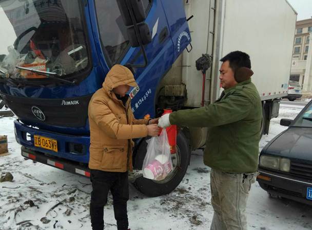 【歐馬可外出救援時為客戶送上熱水、方面面等暖心食品】
