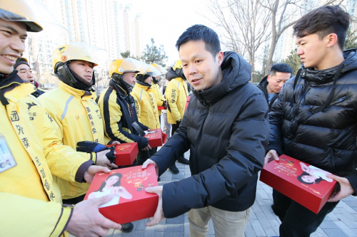 1月28日至31日期間,美團外賣配送事業部總經理魏巍等高管帶領全國基層管理者一起慰問騎手,親手送上春節禮盒。