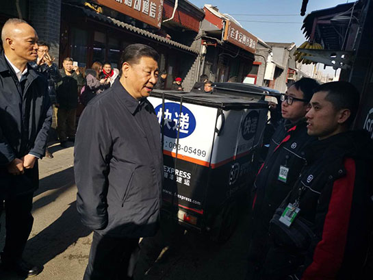 習近平走進北京前門胡同快遞服務點看望“快遞小哥”