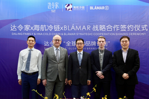 3月8日,海航冷鏈、冰島BLAMAR、達令家在京簽署戰略合作協議,三方表示將依托各自優勢,為中國消費者帶來冰島的健康深海魚產品,推動國人餐桌國際化,冰島大使館駐華大使古士賢、海航冷鏈董事長兼總裁王杰、達令家生鮮商品部總監孫濤、BLÁMAR品牌代表Birkir等相關領導共同出席簽約儀式。“海航冷鏈全球生鮮供應鏈已經覆蓋全球15個國家和地區,品類覆蓋肉、禽、蛋、奶及各類生鮮產品。這次能夠和冰島BLAMAR和達令家達成合作,擴大了海航冷鏈全球生鮮供應鏈網絡布局的同時,進一步實現了從產地到餐桌的極速直通,讓國人餐桌更新鮮、更健康。“海航冷鏈董事長兼總裁王杰對記者表示。