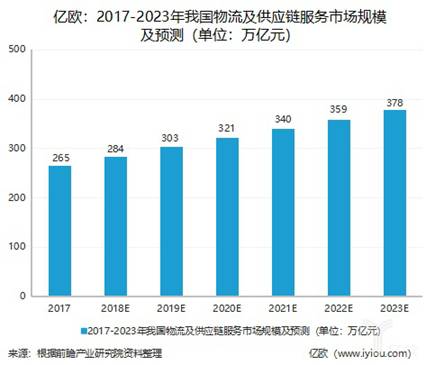 當(dāng)前,供應(yīng)鏈?zhǔn)袌?chǎng)迎來(lái)歷史發(fā)展的重要機(jī)遇期,根據(jù)前瞻產(chǎn)業(yè)研究院發(fā)布的《2018-2023年中國(guó)供應(yīng)鏈管理服務(wù)行業(yè)市場(chǎng)前瞻與商業(yè)模式分析報(bào)告》顯示,未來(lái)五年我國(guó)物流及供應(yīng)鏈服務(wù)市場(chǎng)價(jià)值復(fù)合增長(zhǎng)率將保持在10%左右,到2020年我國(guó)物流及供應(yīng)鏈服務(wù)市場(chǎng)價(jià)值將達(dá)到321萬(wàn)億元,到2023年,市場(chǎng)價(jià)值有望達(dá)到378萬(wàn)億元。