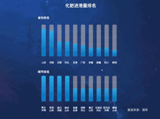 據滿幫數據顯示,化肥進港量排名前十省份是山東、河南、云南、河北、甘肅、廣西、安徽、新疆、四川和陜西。