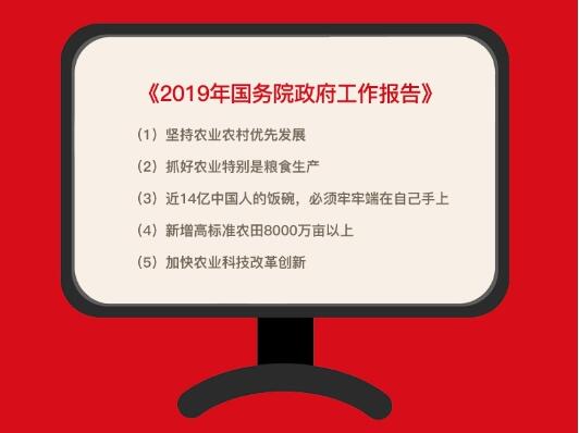 “近14億中國人的飯碗,必須牢牢端在自己手上”、“穩定糧食產量”……2019年全國兩會,政府工作報告對農業的表述,充分體現了農業在國民經濟中的基礎地位和重要性。