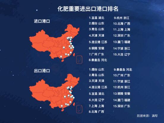 到了20世紀90年代,中國成為世界第一尿素生產國,發展成化肥出口大國。化肥進出口主要靠船運,我國的肥從哪些港口出口?又從哪些港口進口?