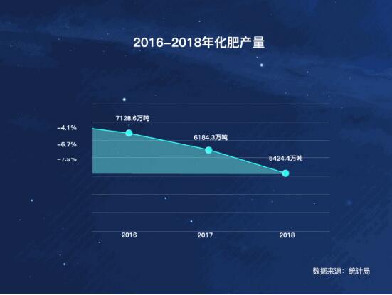 化肥雖好,過度使用卻可能會對土壤、水、食品造成污染。農業供給側改革要求化肥“解決產能過剩”、“轉型升級”,即在“瘦身”的同時又“增肌”。化肥產量在2016年、2017年、2018年分別是7128.6萬噸、6184.3萬噸、5424.4萬噸,已實現減產。