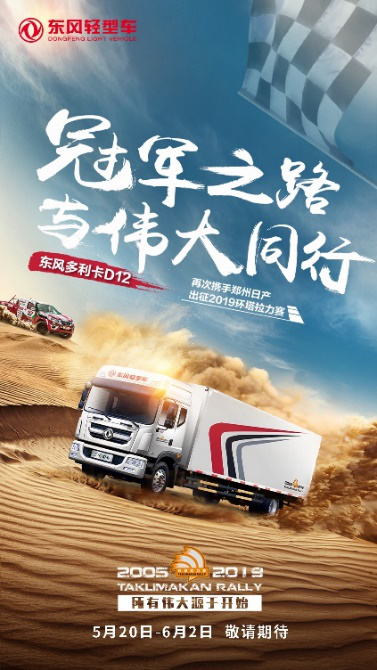 作為今年上半年最為重要的長距離越野國際賽事,2019中國環(huán)塔(國際)拉力賽暨中國汽車越野系列賽(CCR)新疆站賽事將于5月20日至6月3日舉行。曾在去年以唯一指定后勤保障卡車身份出征這項(xiàng)比賽的東風(fēng)輕型車,今年也將與鄭州日產(chǎn)車隊(duì)再度攜手,為車隊(duì)提供后勤全能保障服務(wù),助力車隊(duì)向冠軍發(fā)起沖擊。